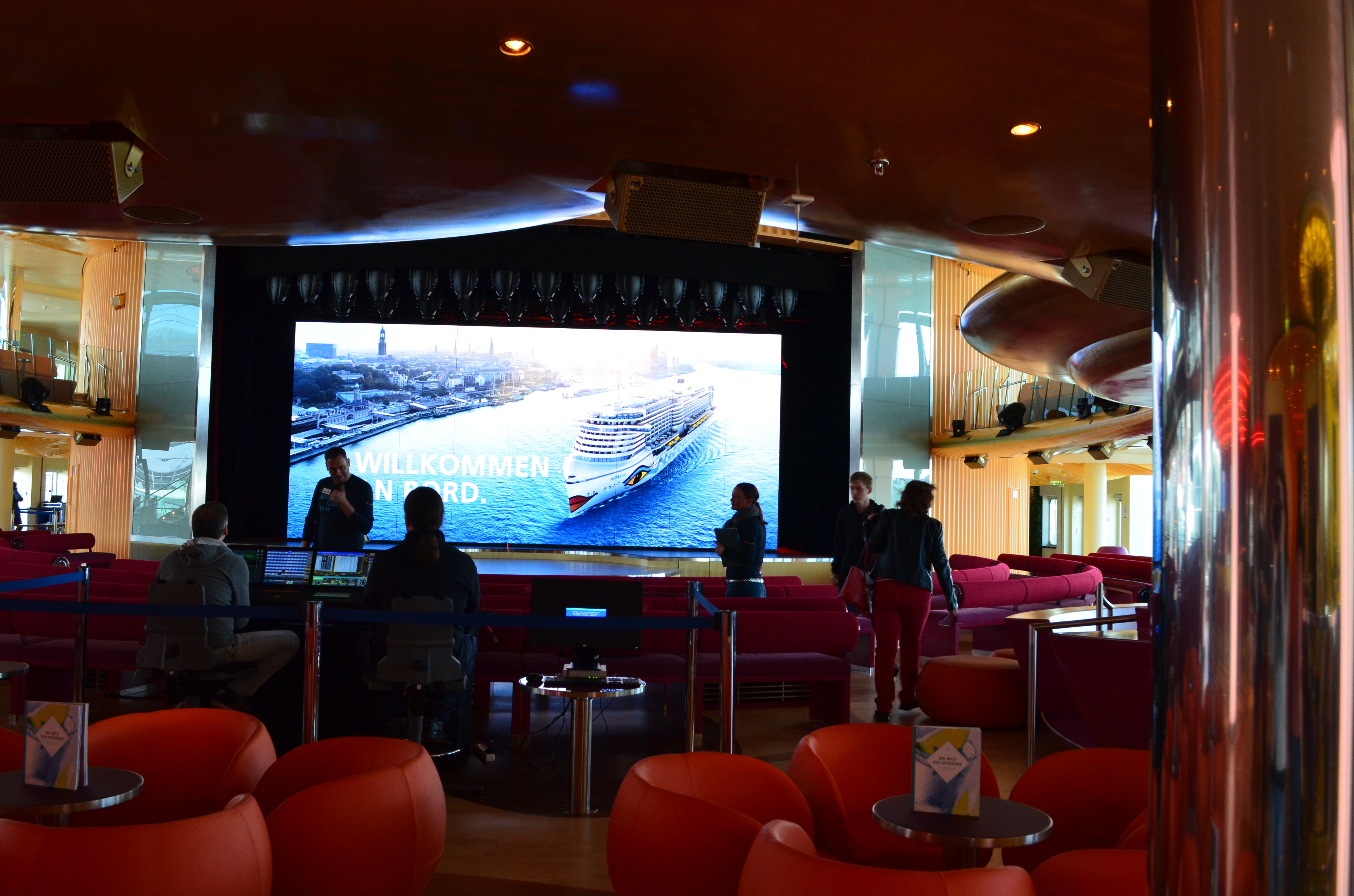 Nach den Sicherheitskontrollen, kamen wir dem Schiff nun näher. Wir wurden herzlich mit einem Sekt empfangen und von Live Musik begleitet, während wir unsere Bordkarten bekommen haben.